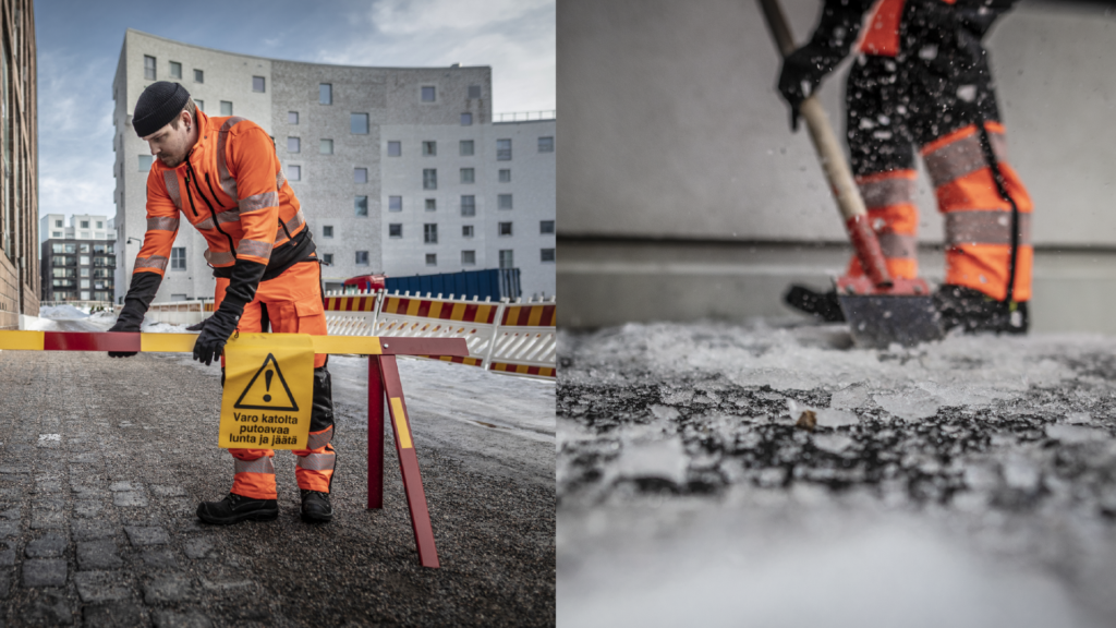 Urakka on alkanut jo kesäkalusteiden suojaan siirtämisellä ja syksyn lehtitöiden viimeistelyllä. Pääpaino talveen varautumisessa on turvallisuudessa. Aurausalueet määritellään etukäteen ja varmistetaan, että kalusto mahtuu tekemään työnsä. Yhdessä taloyhtiön kanssa käydään läpi, mitkä alueet aurataan työkoneilla ja mitkä ovat kiinteistönhoitajien lapioiden ja kolien aluetta. Lisäksi on hankittu ja asennettu aurausmerkkejä ja suunniteltu lumenkasauspaikat. Taloyhtiöiden pihoilla olevat hiekoitusastiat on täytetty liukkaita kelejä varten. Jotta kaikki sujuu mallikkaasti, työvälineet ja -koneet uusitaan tai huolletaan.